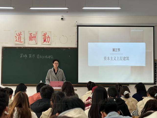 为提升课程教学水平,促进教师经验交流,10月15日下午马克思主义基本原理教研室在管理学院102教室组织开展教学观摩活动。本次活动由陈琦老师主讲,内容聚焦《马克思主义基本原理》第四章第三节“资本主义上层建筑”,教研室全体教师到场观摩学习。