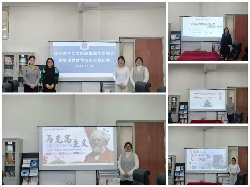 为深入贯彻全国教育大会精神,全面落实《教育强国建设规划纲要(2024-2035 年)》部署要求,严格执行长春建筑学院《2025 年教师教学创新大赛暨第五届课堂教学创新大赛的通知》相关安排,进一步推进学校教育高质量发展,着力提升教育教学与人才培养水平,引导广大教师潜心教书育人、积极推动教学创新,2025 年 11 月 13 日 9:00,马克思主义学院在学院会议室成功举办 2025 年教师教学创新大赛初赛。本次活动由学院副院长赵丽娜主持,各教研室教师积极报名参赛,现场氛围热烈有序,充分展现了学院教师深耕教学、勇于创新的良好风貌。