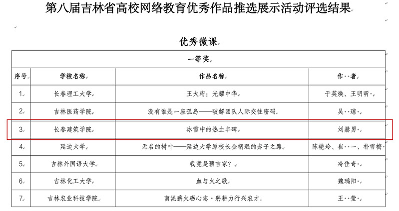 近日,第八届吉林省大学生网络文化节和高校网络教育优秀作品推选展示活动评选结果揭晓,马克思主义学院教师斩获两项荣誉。