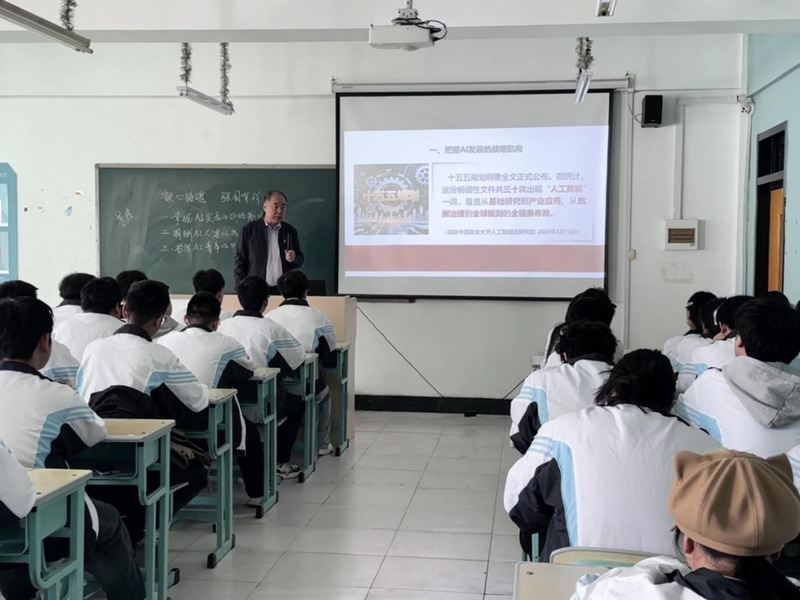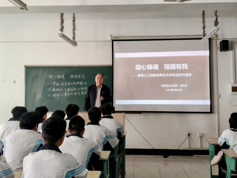为深入推进大思政课建设,落实立德树人根本任务,引导青年学子筑牢信仰之基、找准成长坐标,马克思主义学院持续推进思政教育与专业教育深度融合,组织骨干教师赴各分院开展“开学第一课”主题思政育人活动。3月17日,学院吕中华老师走进人工智能产业学院,以“凝心铸魂,强国有我”为主题,为AI专业学子带来了一场兼具理论高度与实践温度的思政盛宴。