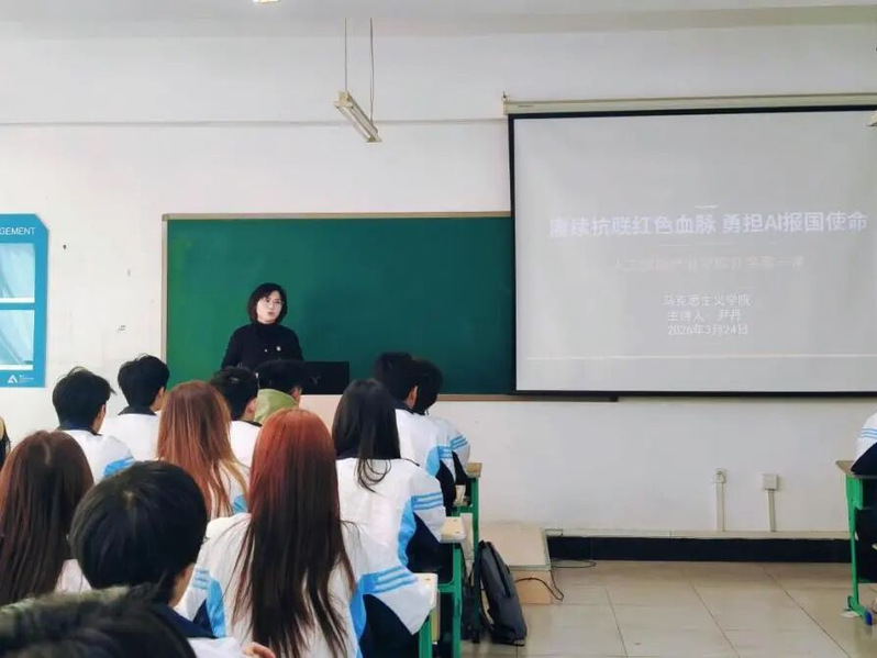 为深入贯彻落实立德树人根本任务,推动思政教育与专业教育深度融合,把红色基因融入青年学子成长全过程,3月24日,马克思主义学院尹丹老师受邀为人工智能产业学院全体学生讲授以“赓续抗联红色血脉,勇担AI报国使命”为主题的“开学第一课”主题班会,将红色精神养分注入青年学子的专业成长之路,展现了马克思主义学院强化思政引领、推进育人全覆盖的扎实行动。